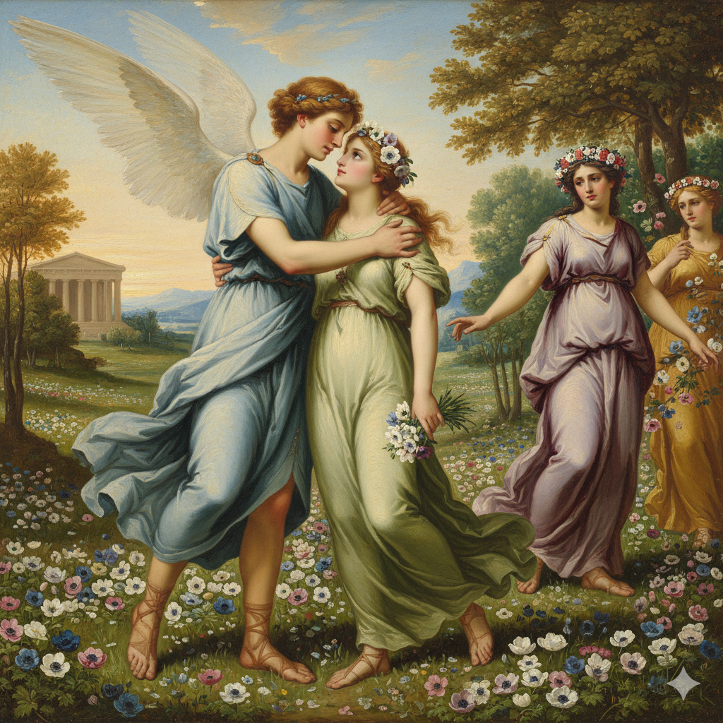 西風の神ゼピュロスと妖精アネモネの悲恋 春の訪れを告げる西風の神ゼピュロス(ゼフィロス)は、妻である花の女神フローラの侍女であった妖精アネモネと恋に落ちました。