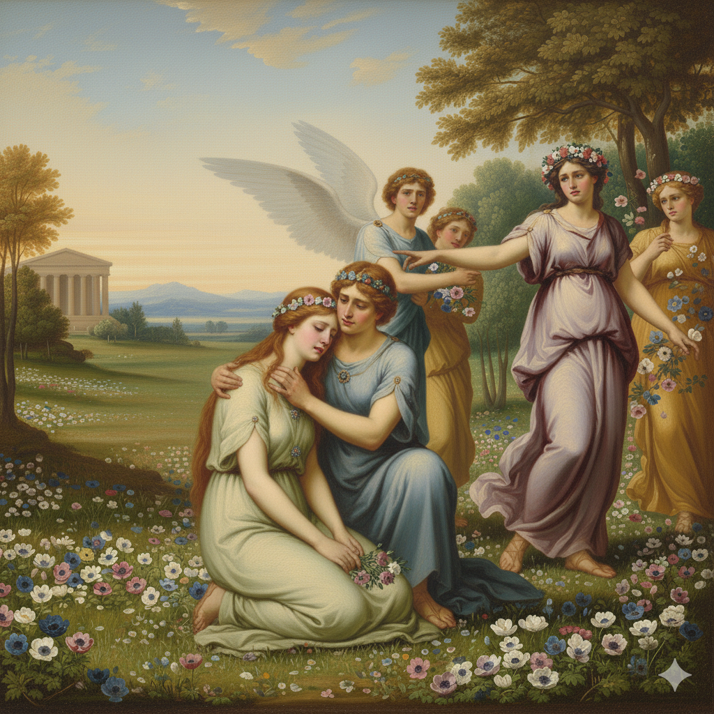 悲嘆に暮れて日に日に弱っていくアネモネを哀れに思ったゼピュロス。